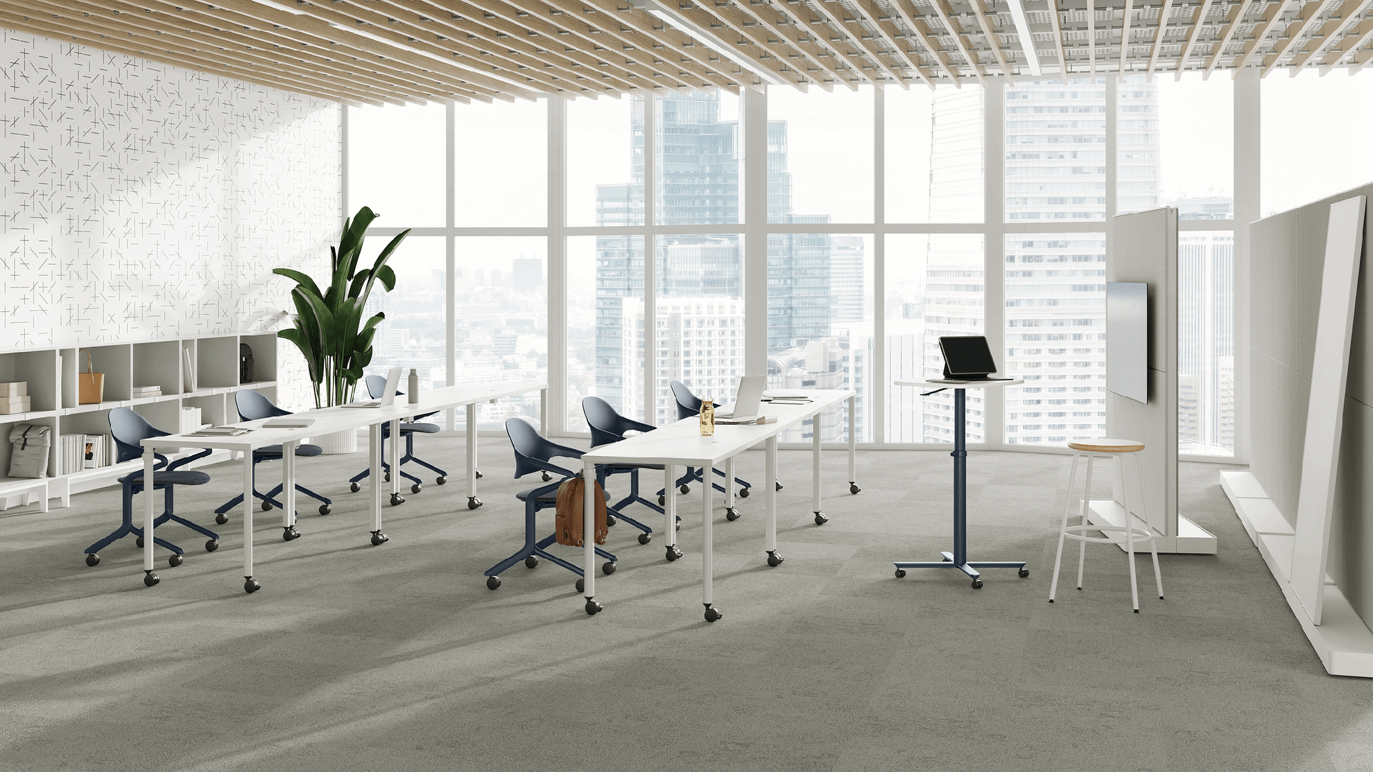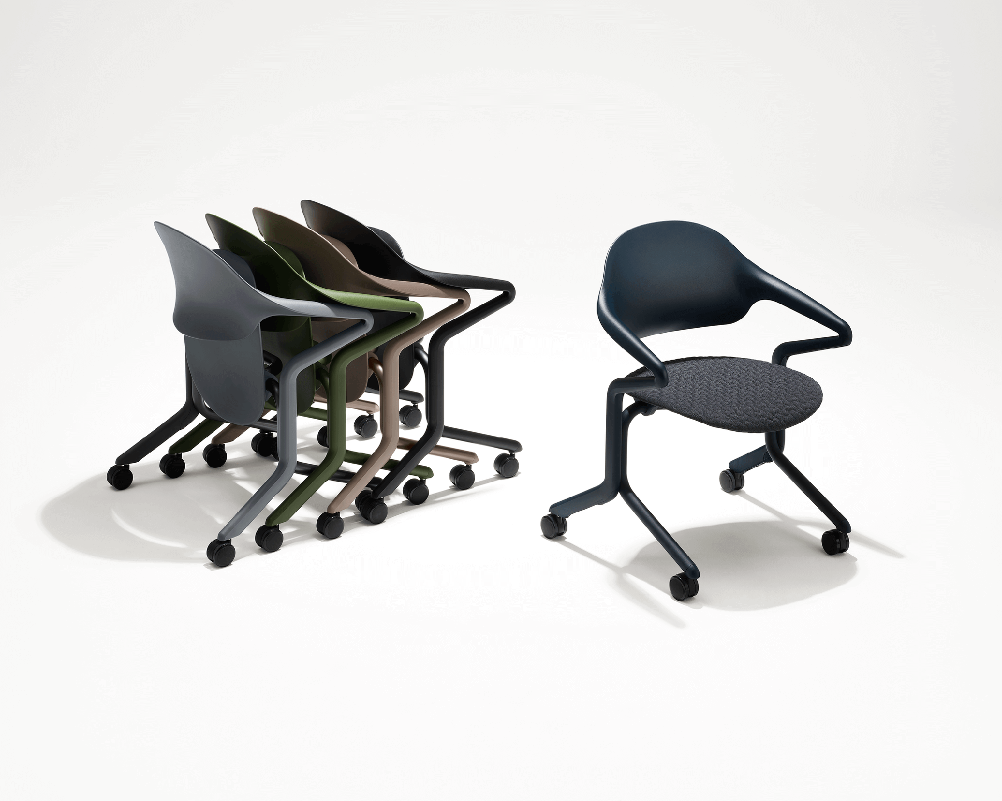 The Fuld Nesting Chair by Herman Miller, designed by Stefan Diez. Is perfect for any agile and collaborative workspaces, providing both comfort and versatility while also considering the environment.