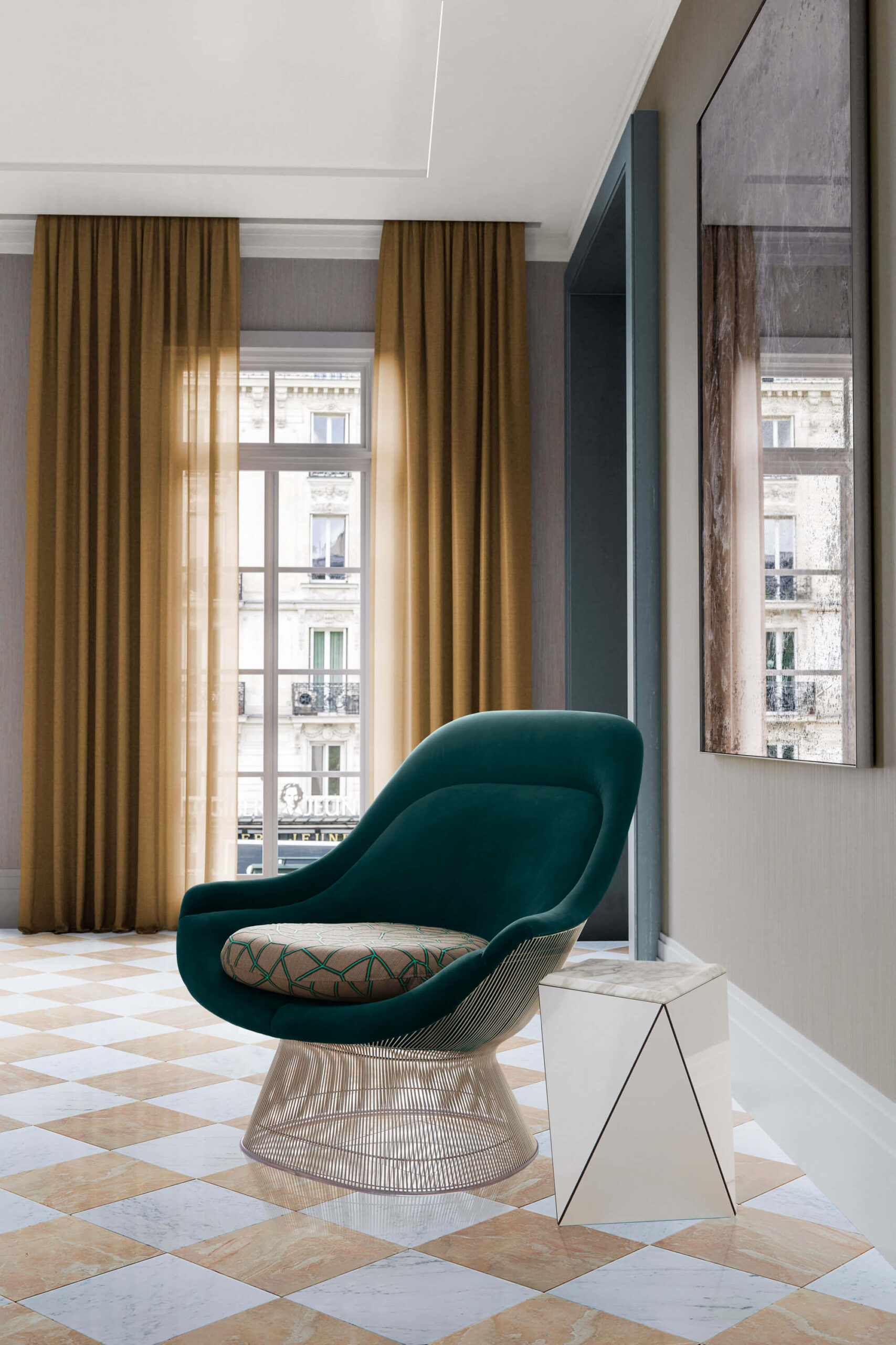 Mid-century furniture icon with gentle lines and comfortable chapes, designed by Warren Platner 1966
